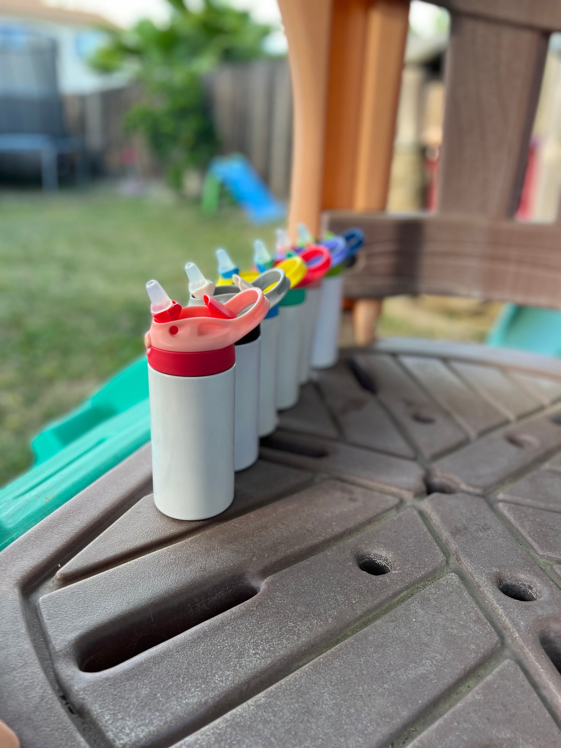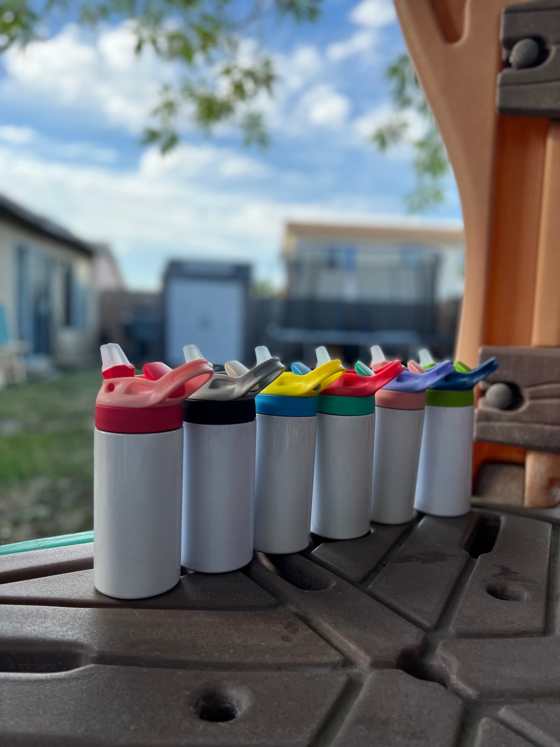 Sublimation/white 15oz double wall kids stainless steel tumbler/sports bottle.